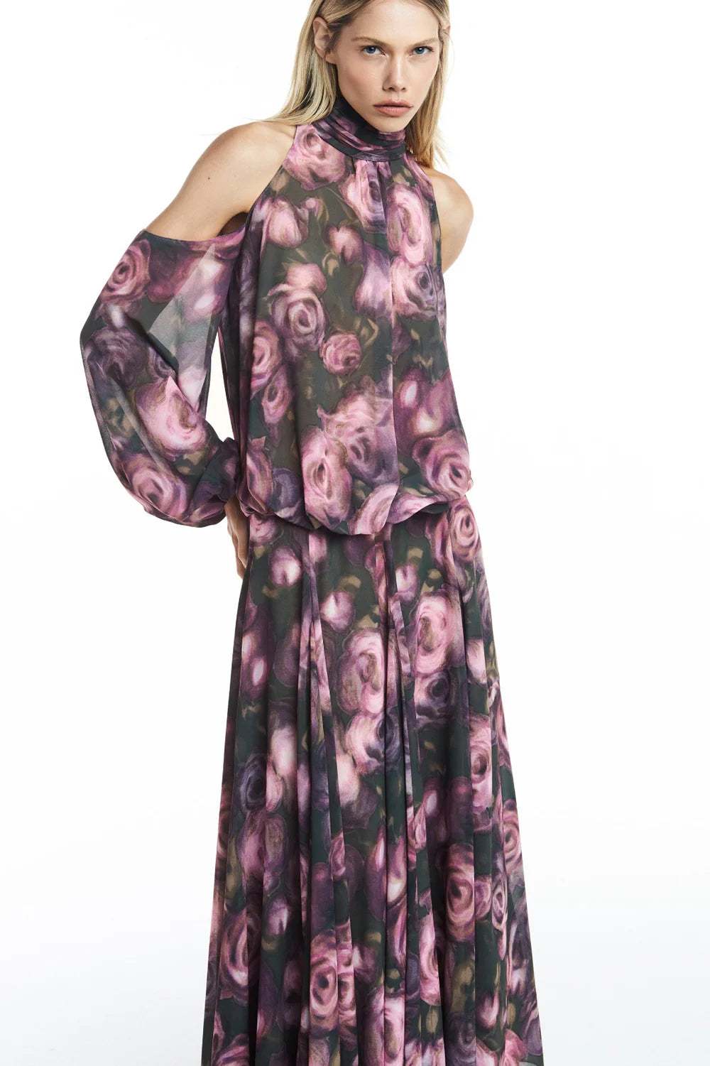 Blusa em crepe leve manga longa com elástico no punho e barra. Modelagem fluida ao corpo e gola alta. Possui shape amplo e detalhes franzidos, ombros com recortes. Possui tiras para amarração na parte de trás da peça mais botão.