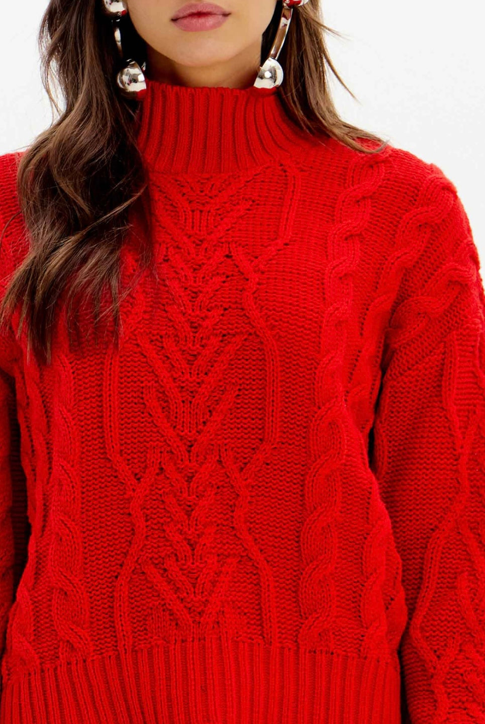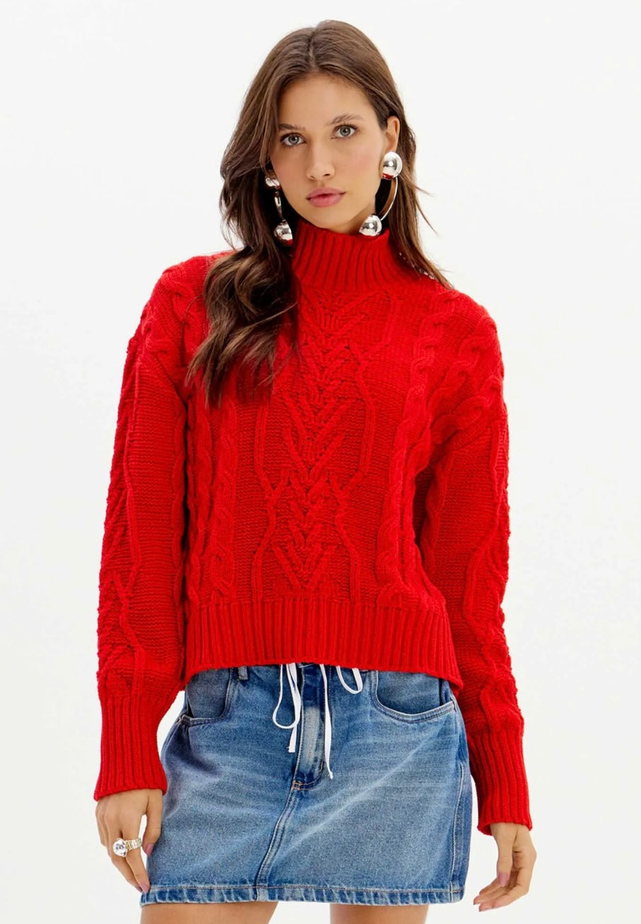 Blusa de tricot feminina confeccionada em 100% acrílico. Possui gola alta canelada, mangas longas e trama trabalhada em relevo. Modelagem levemente soltinha, garantindo conforto e estilo.