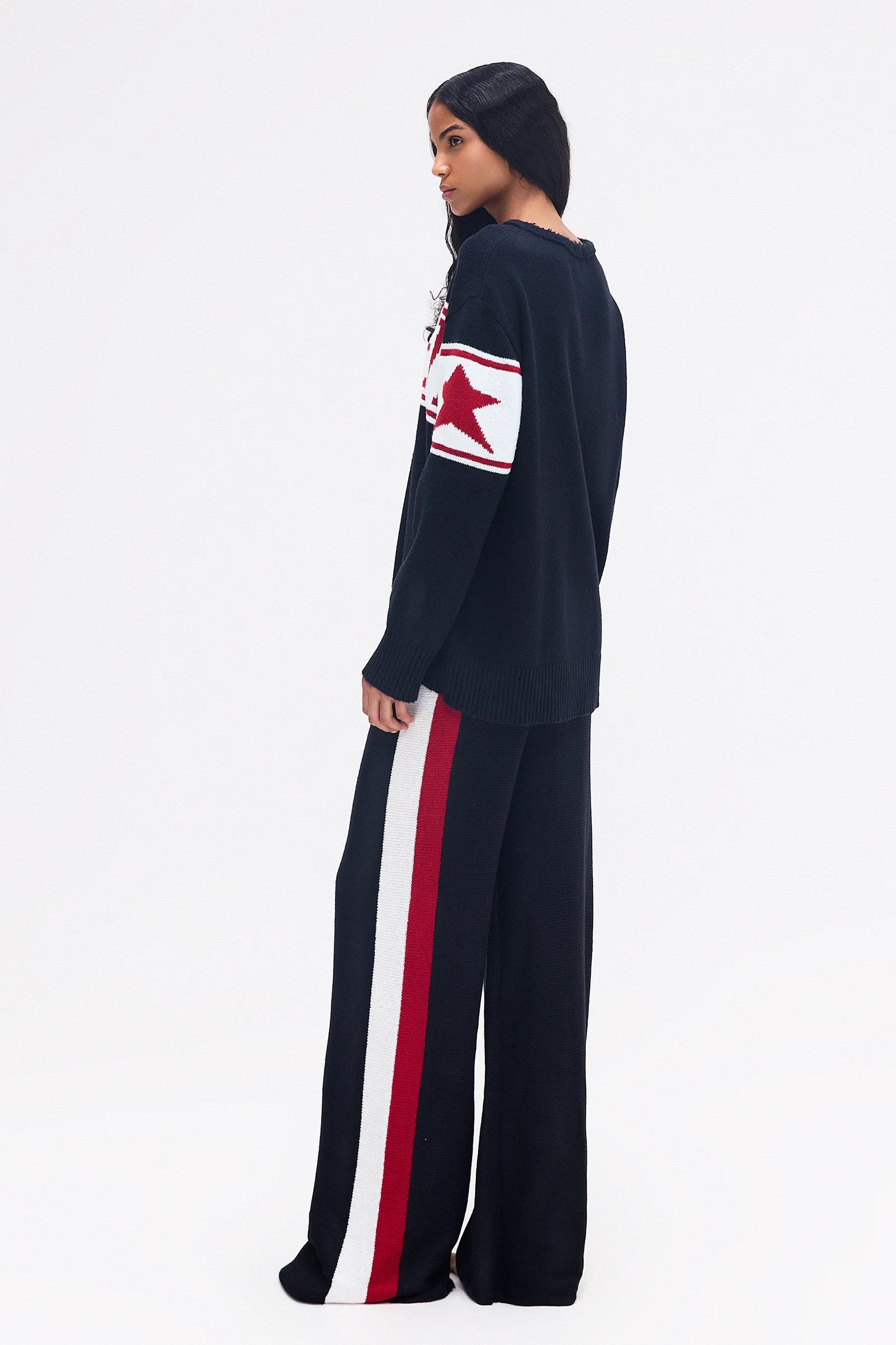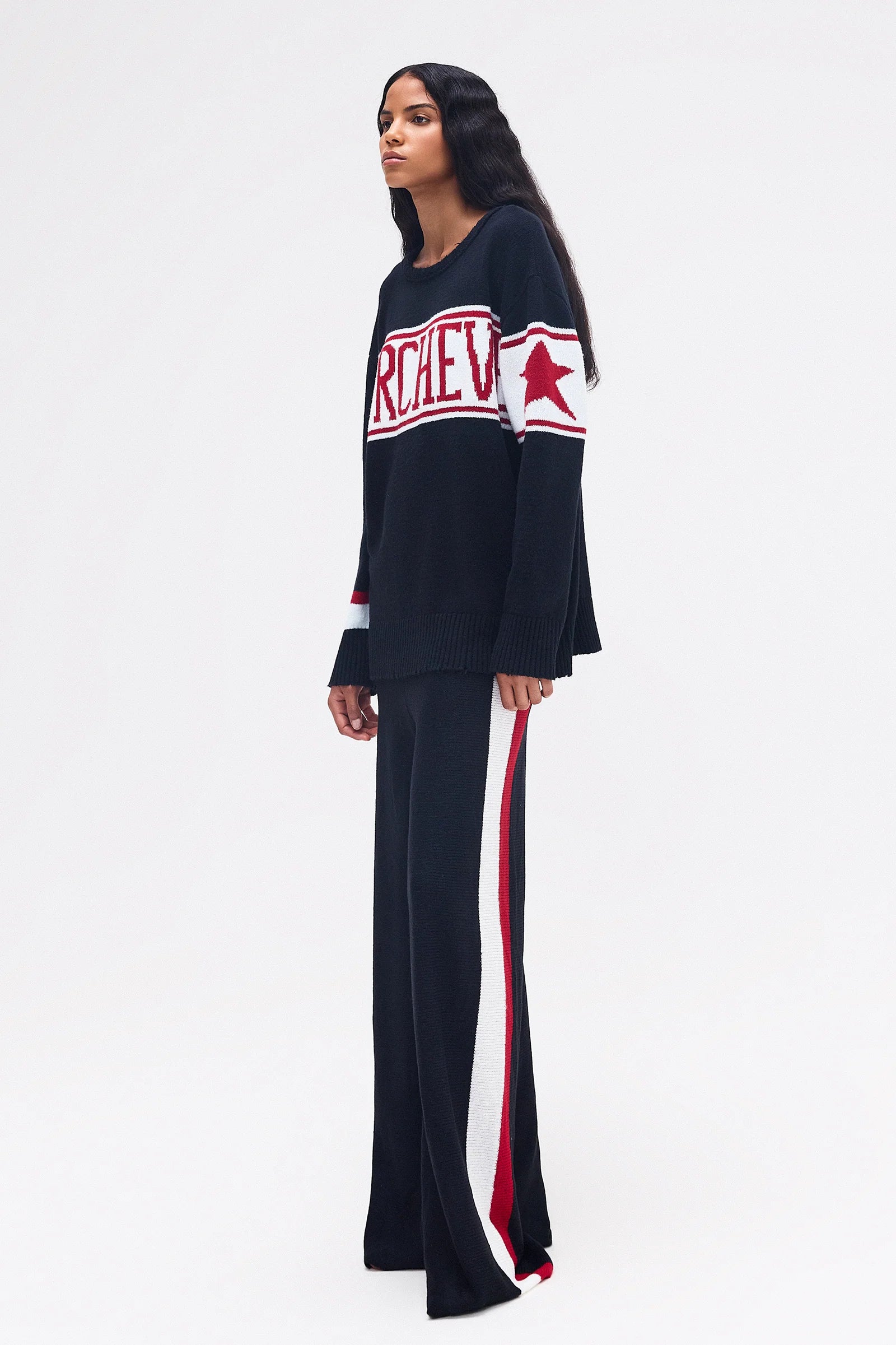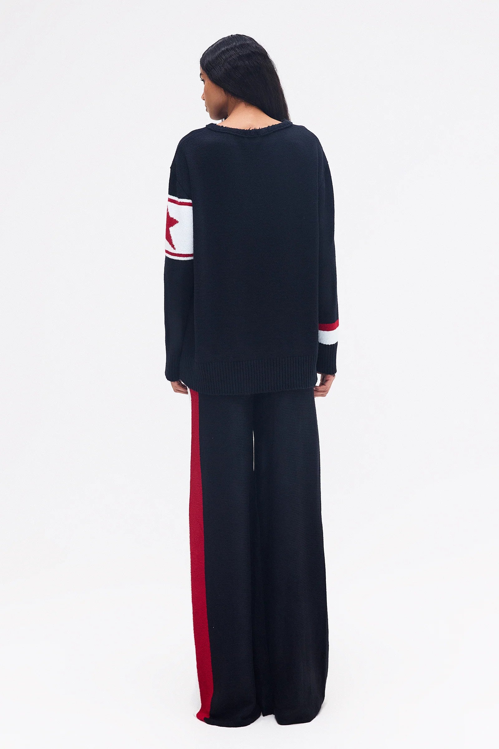 Blusa em tricot de toque macio e tramas fechadas. Possui modelagem ampla. Acabamento canelado no decote e punhos. Não possui fechamento.