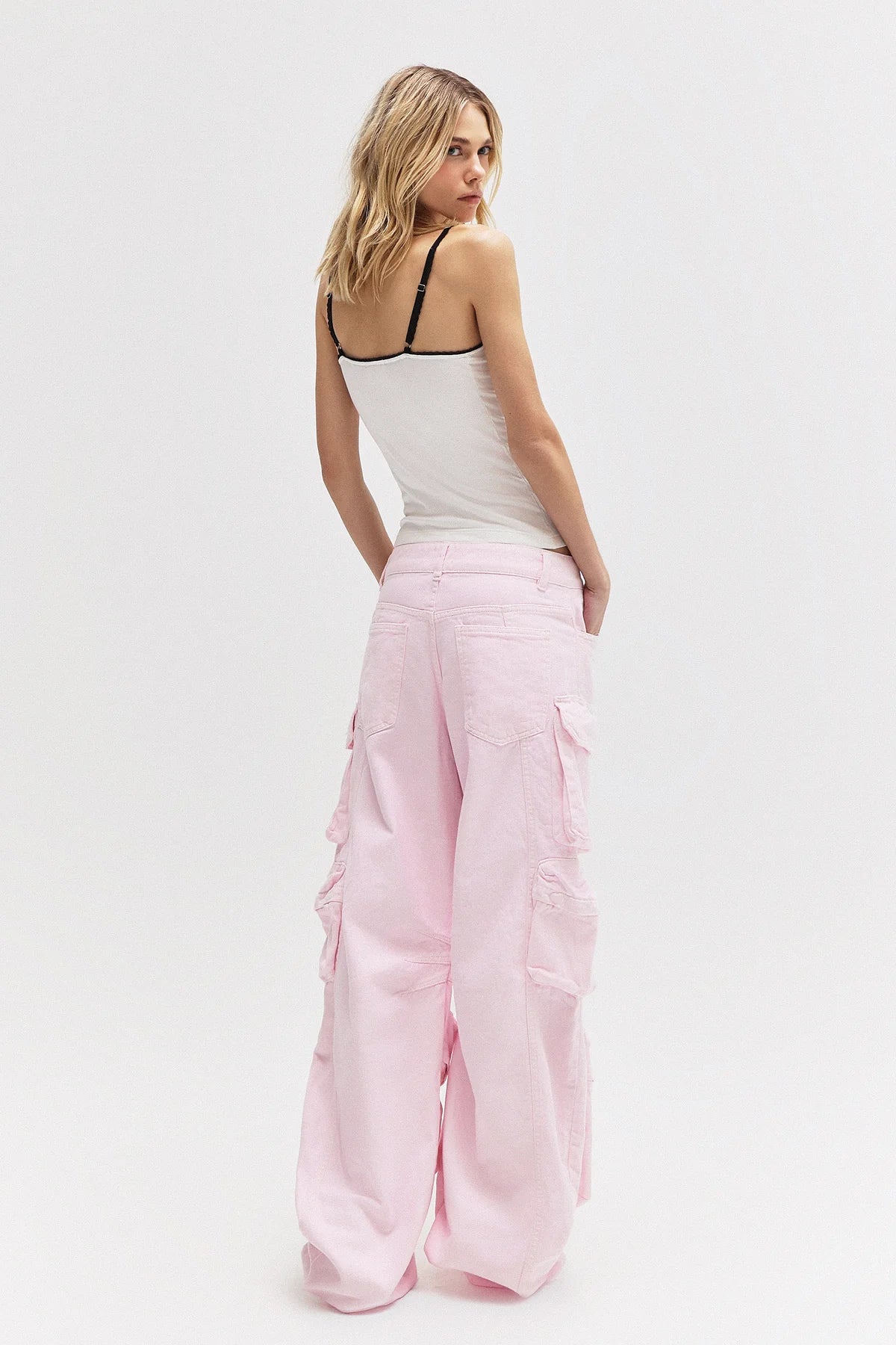 CALÇA CARGO 12 BOLSOS SARJA ROSA CLARA