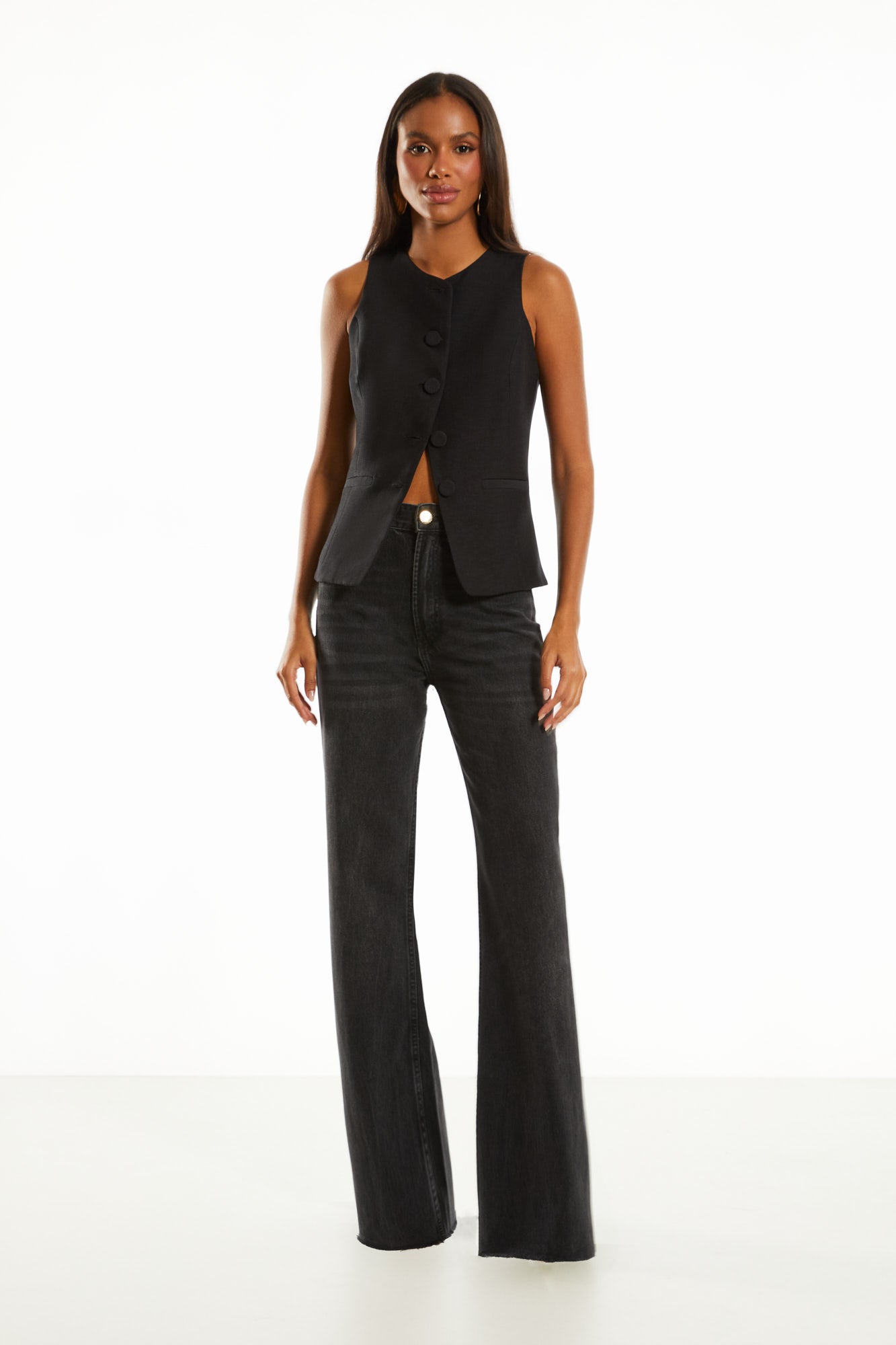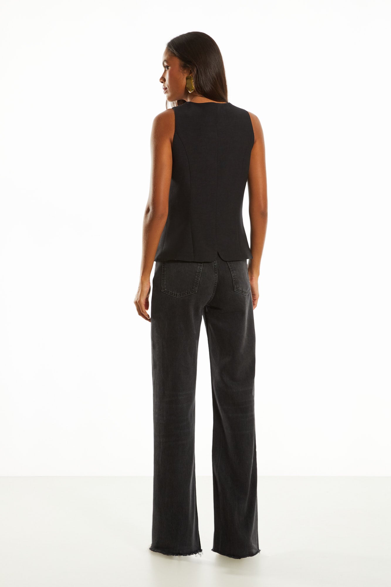 A lavagem escura da calça jeans preto adiciona um toque de sofisticação e praticidade. Este tipo de lavagem é perfeito para ocasiões que exigem um visual mais polido, além de ser fácil de combinar com outras cores e peças.
