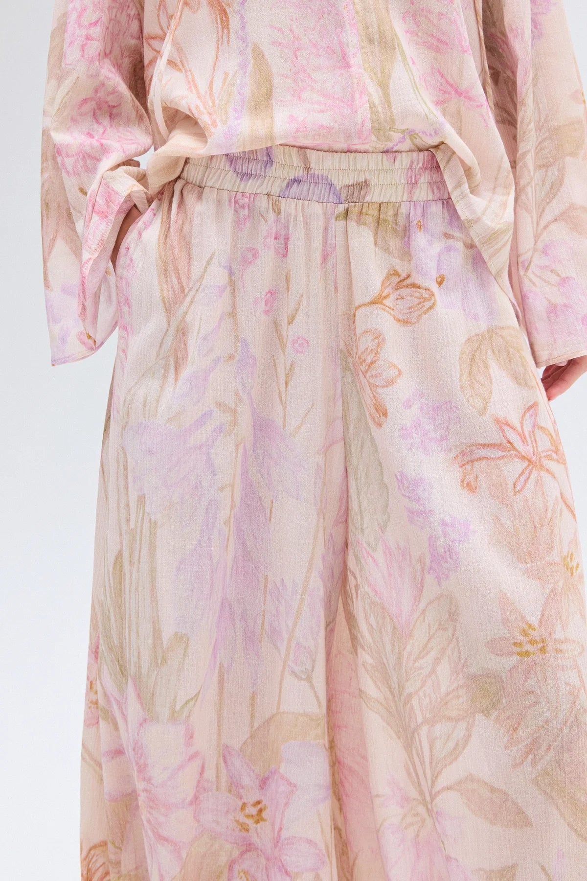 Calça em algodão estampada. Modelagem ampla e shape soltinho. Possui elástico no cós para maior ajuste e conforto da peça ao corpo. Não possui fechamento.