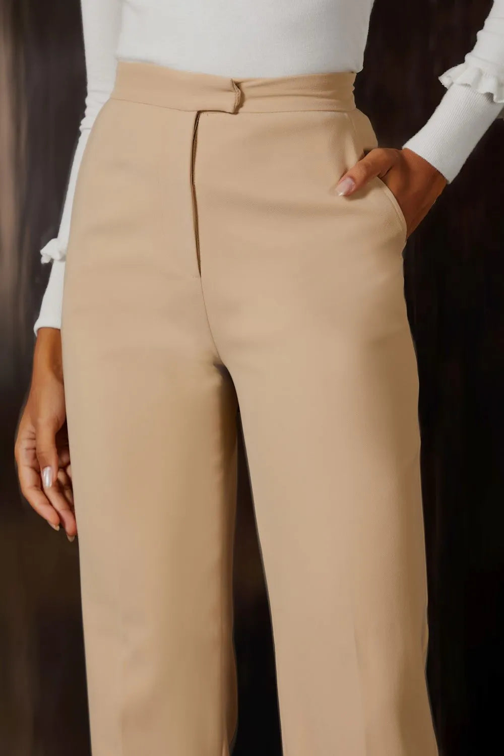 Confeccionada em tecido de crepe estruturado, esta calça oferece não apenas conforto, mas também uma estética refinada que se destaca.