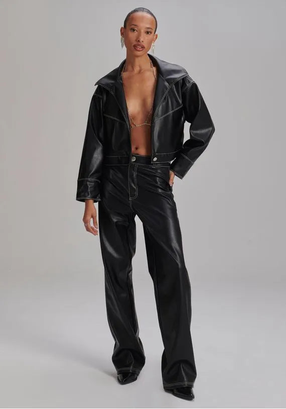 A calça wide leg de cintura alta é confeccionada em vinyl, uma proposta marcante e cheia de personalidade. O caimento mais amplo é glam, perfeito para produções noturnas. Mas, não se limite. Use essa peça também em ocasiões do dia a dia com combinações incríveis.