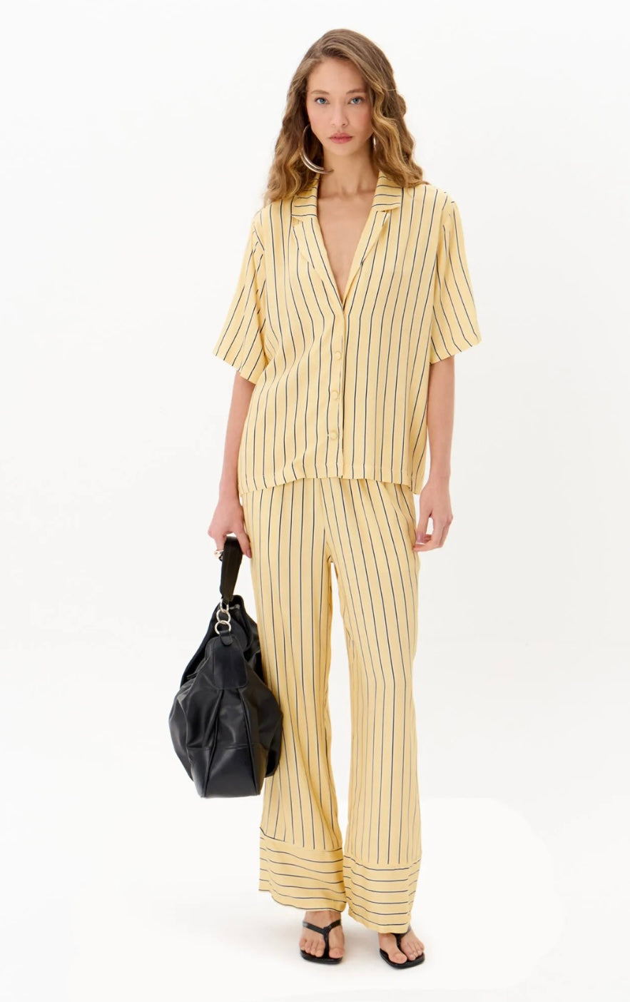 CAMISA MANGA CURTA LISTRADA AMARELA