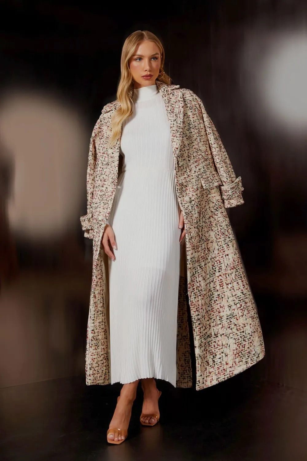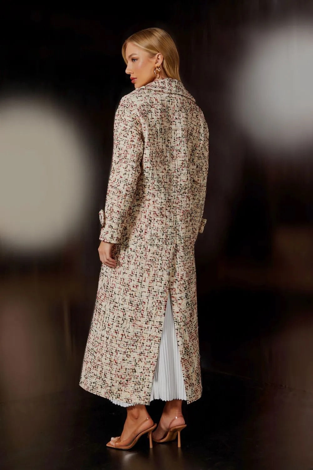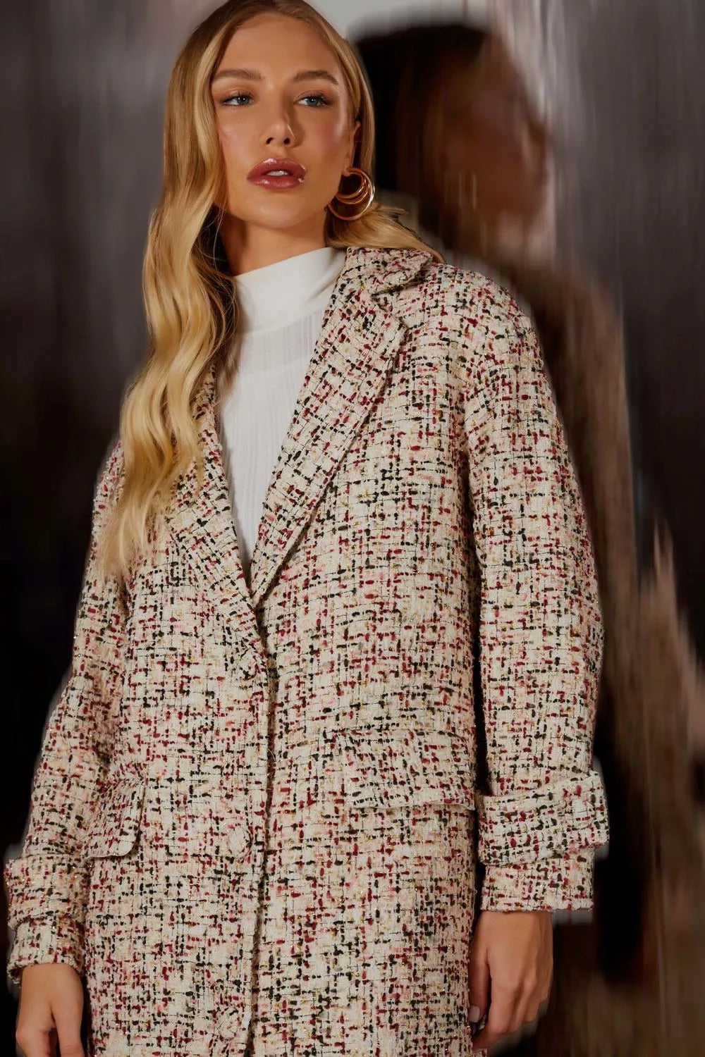 Introduza um toque de luxo em sua coleção de inverno com o nosso casaco em tweed off white.