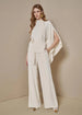 O conjunto é sinônimo de elegância minimalista. A blusa assimétrica com uma manga se destaca pelo design diferenciado e pela faixa que envolve o pescoço com finesse, criando um visual clean e ao mesmo tempo marcante. O cinto com fivela de metal estrutura o look com discrição, e a calça com bolsos laterais traz conforto e equilíbrio à composição. Um conjunto perfeito para quem busca um visual iluminado, atual e atemporal.