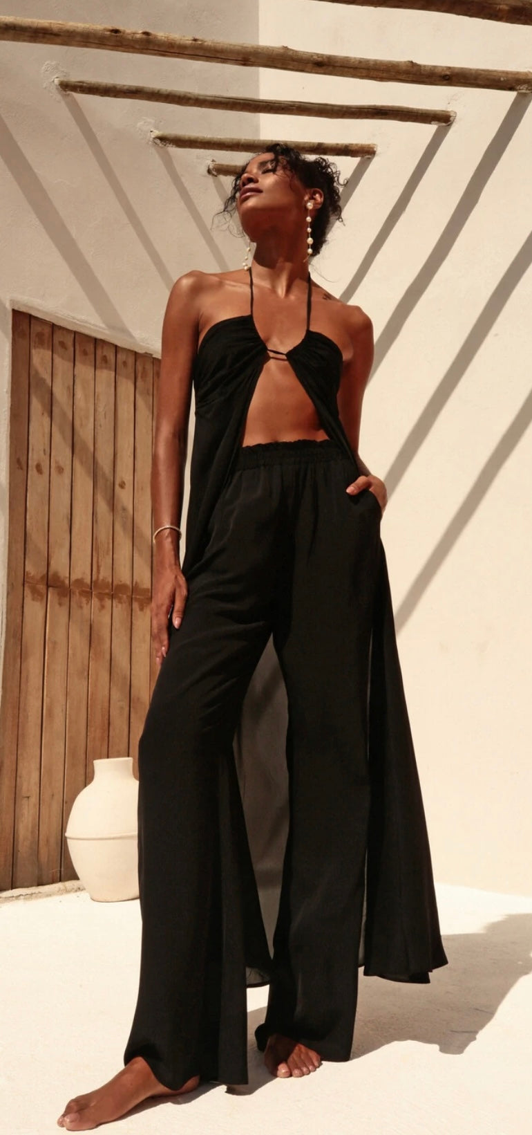 DETALHES CALÇA: Calça longa com elástico na cintura