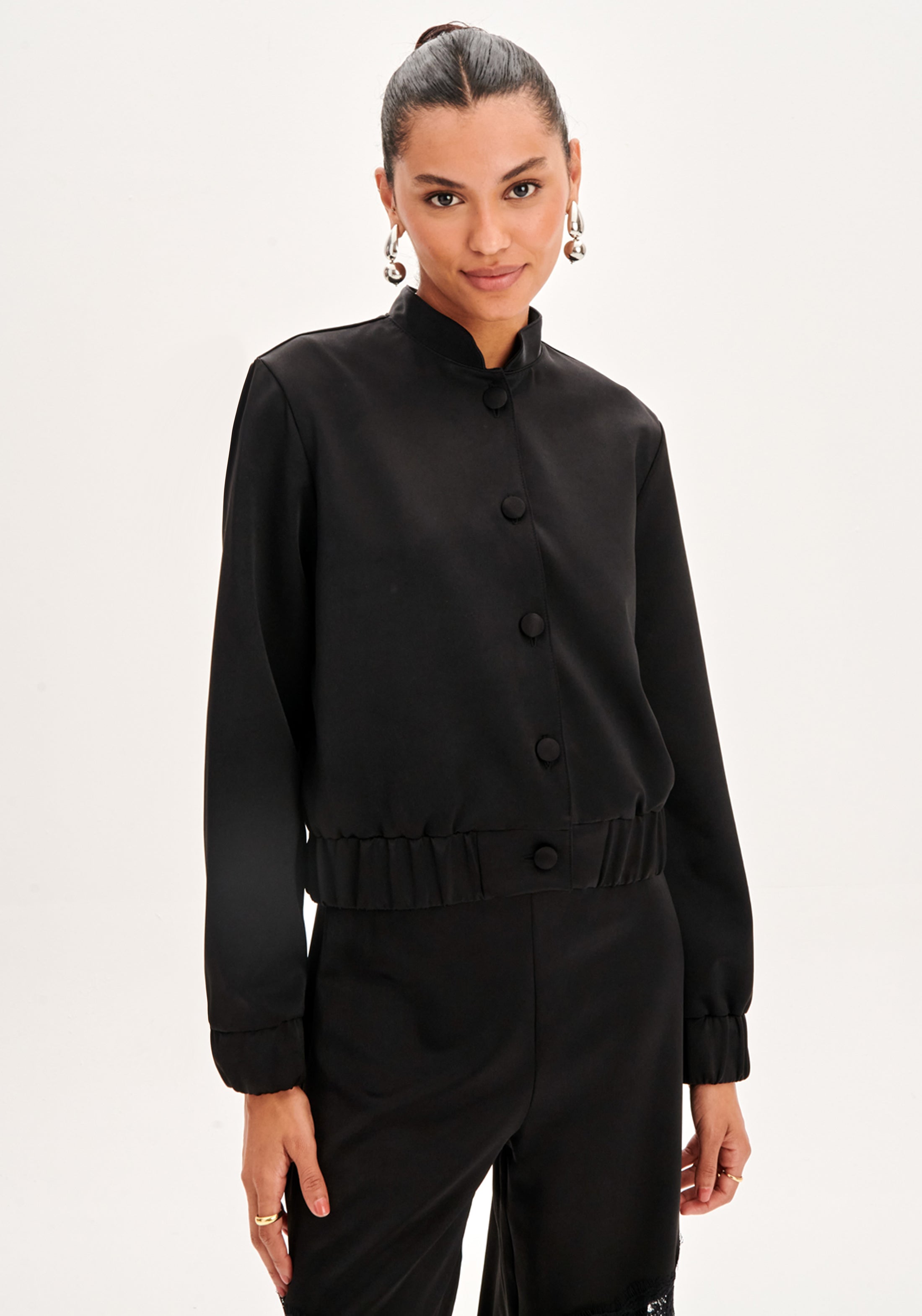 A jaqueta bomber é a escolha ideal para um visual fashion e descontraído. Com botões que adicionam um toque de estilo, é perfeita para combinar com diversas peças. Seja para um look casual ou para uma ocasião especial, aposte nesta peça.