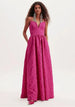 Vestido longo em renda texturizada, na cor pink, com alças finas, bolsos e decote coração profundo. O modelo une delicadeza e sofisticação, ideal para festas e ocasiões especiais. Confeccionado em 100% poliéster, garante elegância e caimento impecável