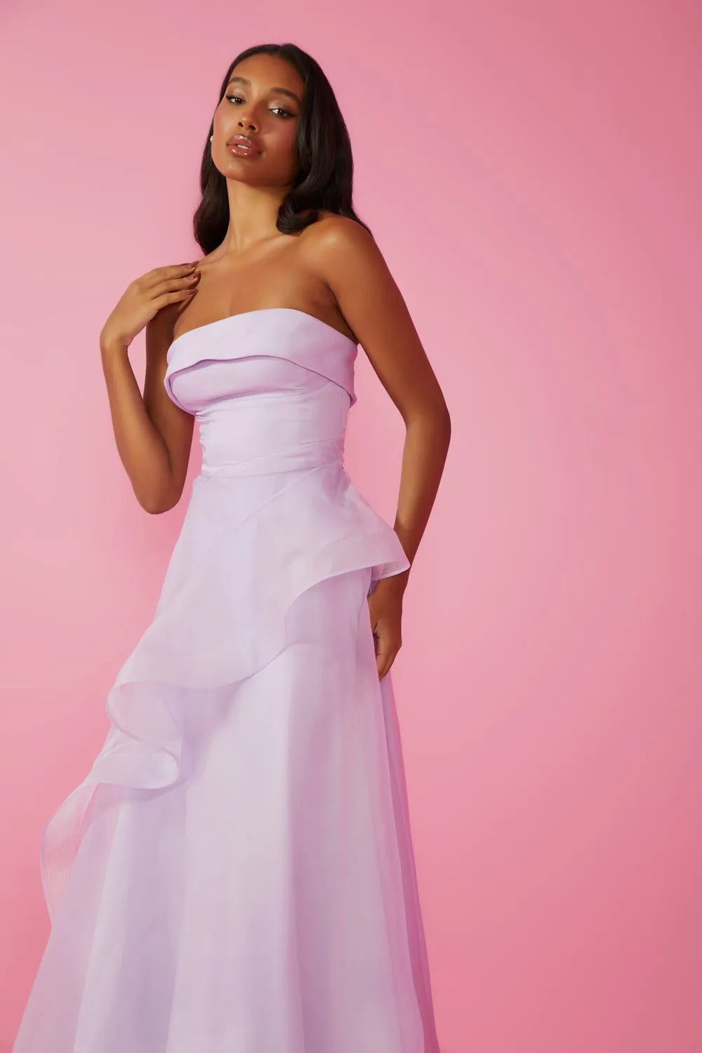 Vestido lavanda confeccionado em organza de seda. Possui modelagem tomara que caia, dobradura no decote reto, sobreposição como babado irregular na saia e fechamento posterior por zíper. O vestido lavanda é uma peça encantadora, confeccionada em organza de seda de alta qualidade. Sua delicadeza e fluidez conferem um visual romântico e elegante, perfeito para ocasiões especiais. A modelagem tomara que caia valoriza os ombros e o colo, destacando sua feminilidade. O decote reto possui uma elegante dobradura, adicionando um toque de sofisticação ao vestido. A saia do vestido apresenta uma sobreposição em babado irregular, criando movimento e adicionando um charme extra à peça. Esses detalhes conferem uma sensação de leveza e suavidade, perfeitos para uma ocasião especial. Para usar o vestido sem errar, opte por acessórios delicados que complementam o estilo romântico do vestido. Brincos pequenos, uma pulseira fina e um colar discreto são ótimas opções para adicionar um toque de elegância ao look.
