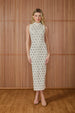 Este vestido midi é confeccionado em malha, garantindo conforto e elasticidade para um ajuste perfeito ao corpo. As aplicações de metais em hotfix acrescentam um toque de brilho sutil, proporcionando sofisticação e modernidade à peça. A combinação do material flexível com os detalhes metálicos cria um visual equilibrado.