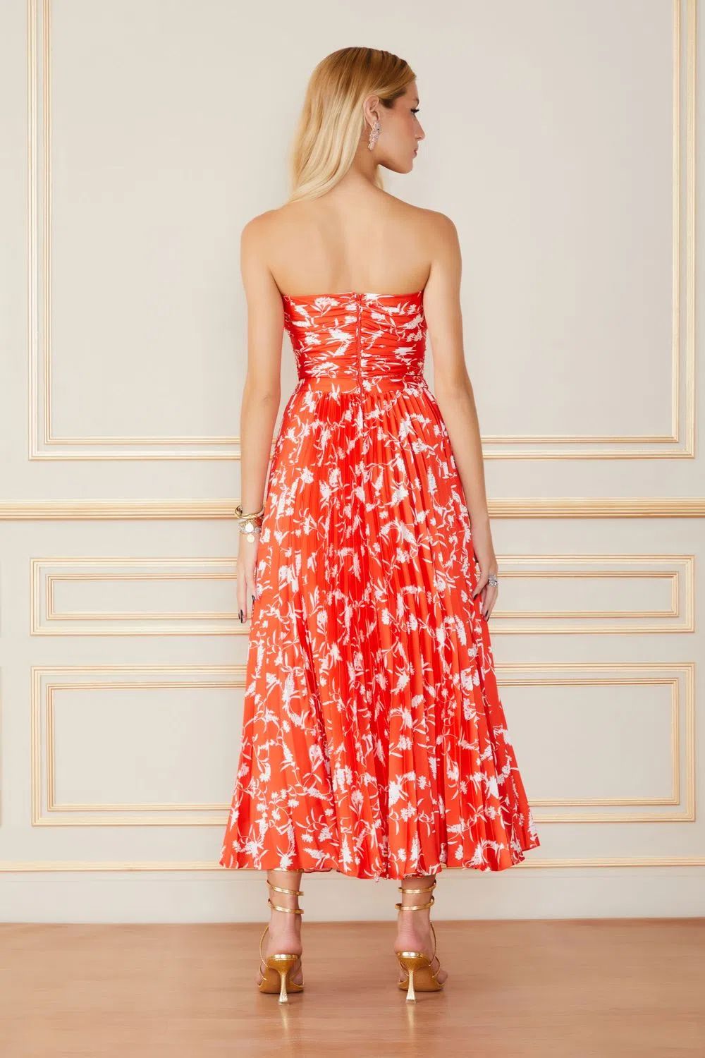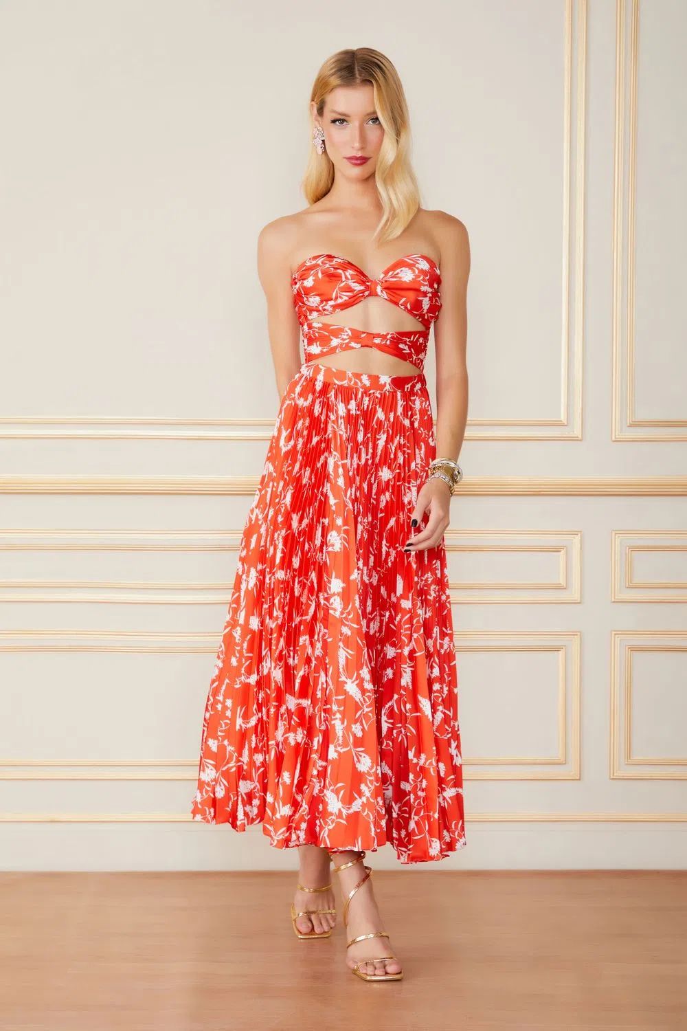 Um vestido longo confeccionado em tecido leve e acetinado, com modelagem tomara que caia, decote coração e aberturas frontais como detalhe. A base é plissada e o fechamento é posterior por zíper de nylon. Conferindo calma e harmonia, este print precisa estar presente em suas produções. Inspirada na estética delicada e natural, a peça floral permite muita versatilidade de estilo, basta saber usá-la para montar composições que refletem a imagem que você quer passar. Propostas que trazem esse shape imprimem uma ideia forte de verão, frescor e até romantismo. Você não pode ficar de fora desta tendência. E esse vestido é uma alternativa sugerida para ficar por dentro.