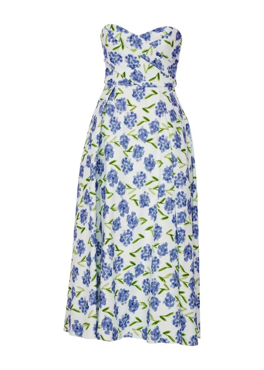 A estampa floral fresca e vibrante das hosrtências imprime leveza a esse vestido longo que une romantismo e estrutura com sofisticação. O busto com detalhe franzido e sustentação interna valoriza o colo com elegância, enquanto a modelagem acinturada com recortes e fechamento posterior em zíper invisível garante caimento impecável. O comprimento mídi alonga a silhueta e permite composições versáteis. Combine com sandálias de salto bloco para eventos diurnos ou acessórios metalizados para um toque glam à noite.